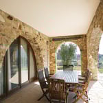 E’ l’appartamento più spazioso adatto anche a famiglie numerose 5/6 persone. L’ampio porticato esterno rende molto gradevole il momento dei pasti. Ubicato nel lato sud del casale, gli spessi muri in pietra lo rendono caldo in inverno e fresco durante la stagione estiva. La scelta di lasciare alcune pareti interne con il sasso a vista crea un’atmosfera di altri tempi.