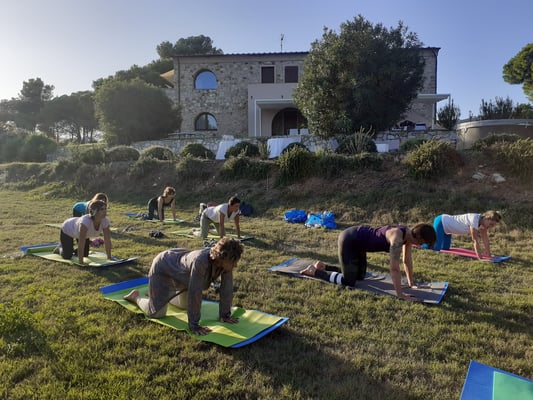 Per il tuo benessere quotidiano abbiamo lo Yoga che puoi praticare , nell'aia circolare o sotto i pini marittimi, e laboratori olistici che proponiamo per stimolare la tua armonia.